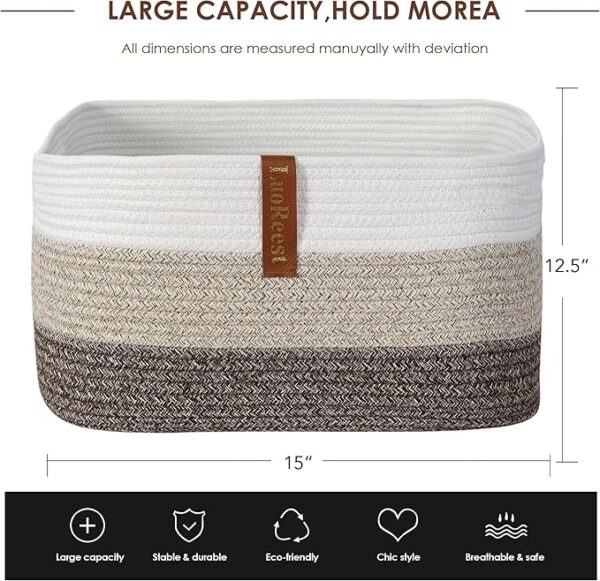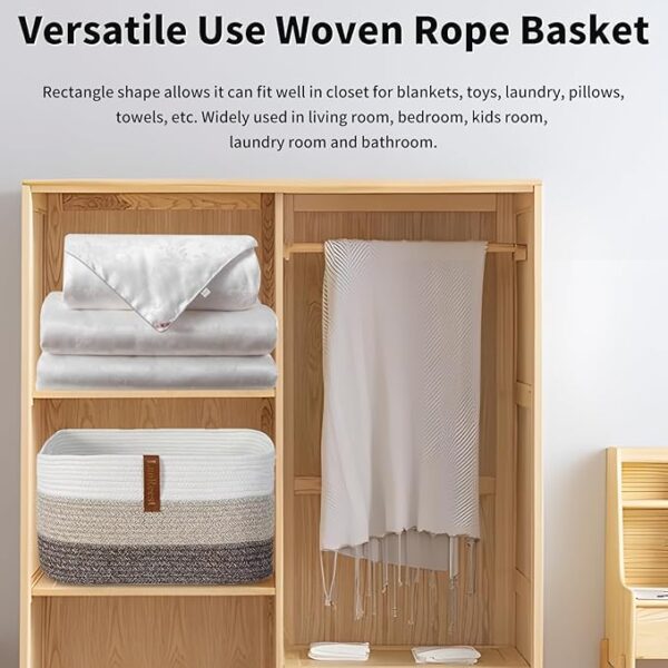 - ⭐Decorative and Versatile: This rectangular blanket basket (21.7’’ x 16.9’’ x 11.8’’) is stable and retains its shape upon unpacking. Ideal for storing blankets, pillows, cushions, toys, clothes, and towels, it adds a touch of elegance to any living room, nursery, or bedroom.