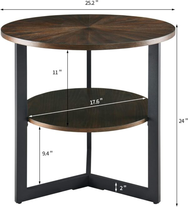 • 2-Tire STORAGR SPACE END TABLE: With dimension 25.2″Dia x 24″H,Our sofa side table for small space covers a small area and has a large storage space. Both the upper and lower floors are equipped with storage partitions, gives you extra space to store magazines and toys, and make your room tidy and neat. And also, this distinctive design provides highlights for your home.