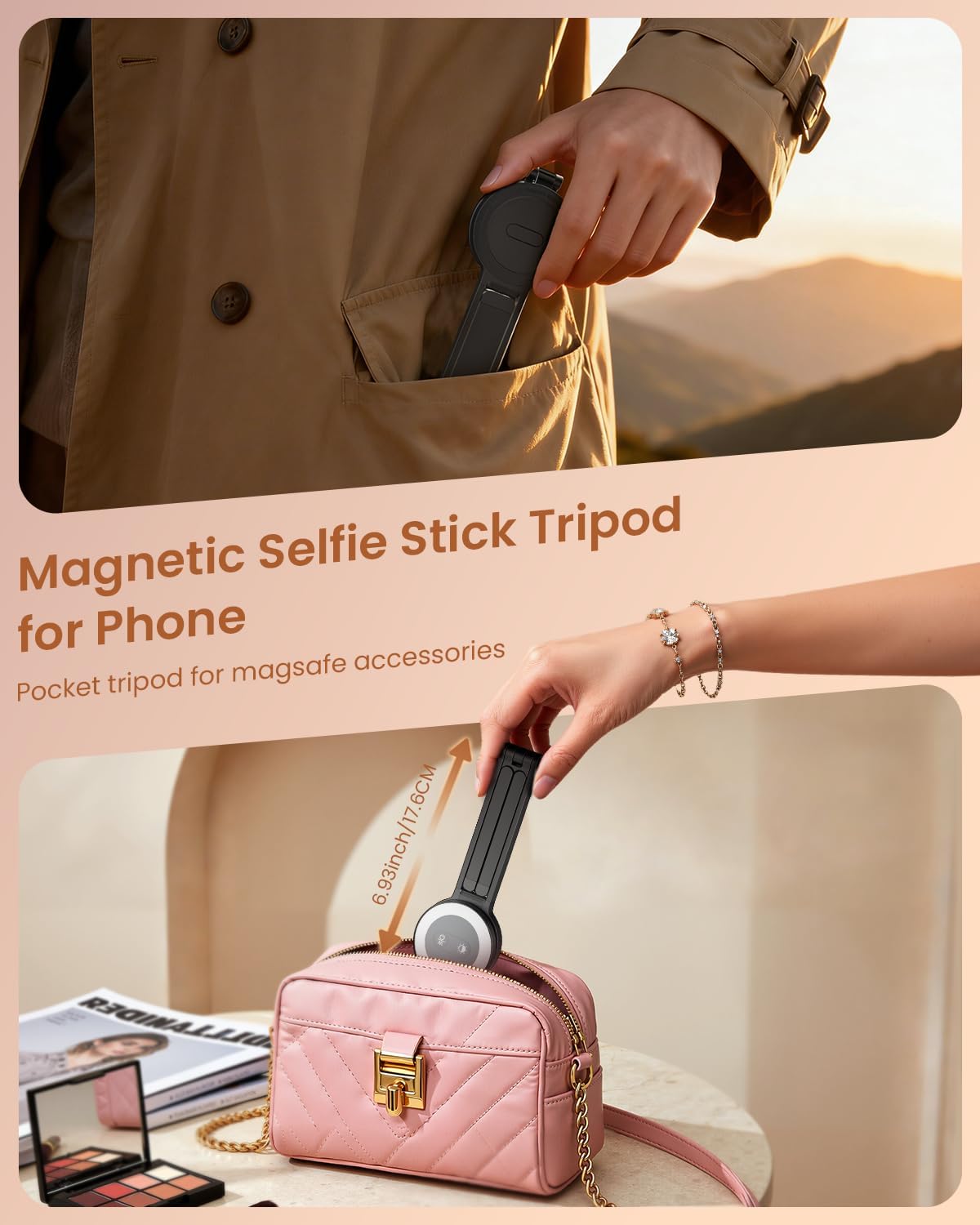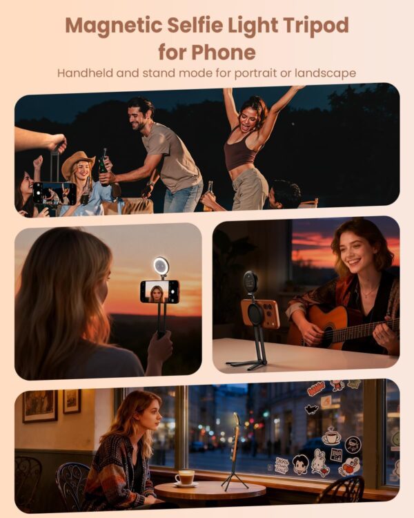2-in-1 Design: Functions as both tripod stand and handheld selfie stick for versatile use.