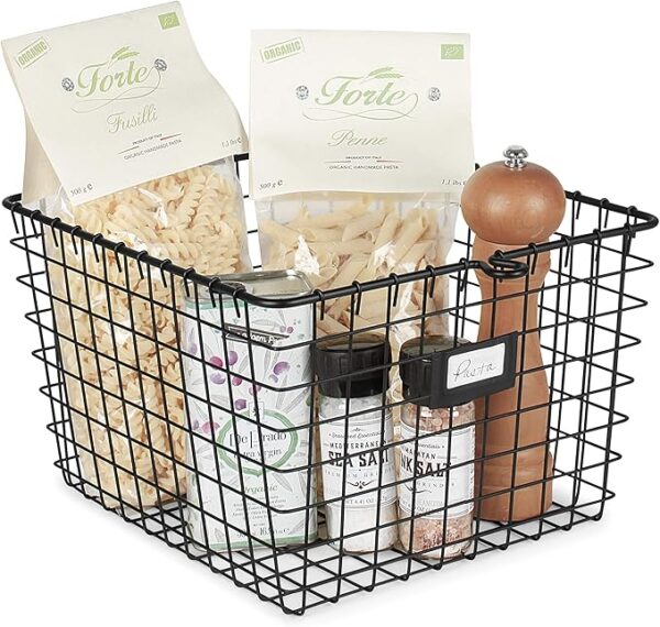 - VIEW ITEMS INSIDE WITH OPEN DESIGN: Open wire design allows you to see the items inside the basket, which makes it easy to find the ingredient, toy, scarf, or any other item you need. Keep your closets, pantry, kitchen cabinets, garage shelves and more organized without sacrificing easy access.