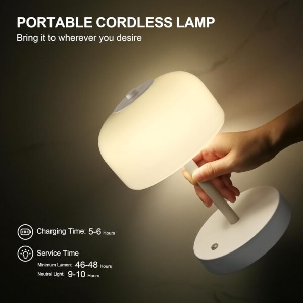 - Portable Cordless Table Lamp: This mini lamp embodies portability, featuring a light design that fits snugly in your hand. With its cordless, rechargeable battery, you can set it up on a console table or side table where you do not have the access to electric outlets. Effortlessly accompany you from room to room, the campsite, or your tranquil backyard retreat