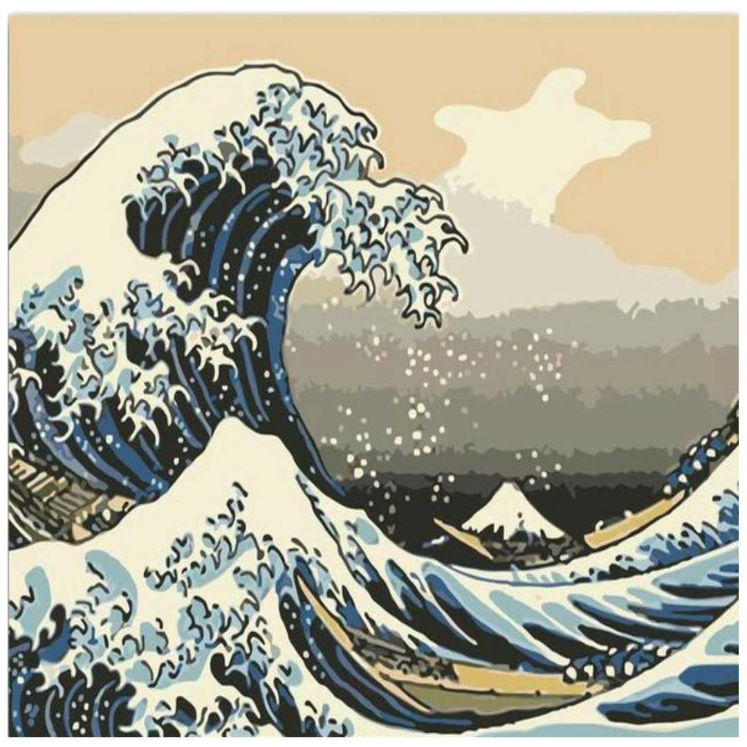 Each color in the kit of paint by numbers for adults is numbered and corresponds to the number on the canvas. All you need to do is to apply the paint to the proper place carefully. Thus, step by step, you will painting the most famous art of The Great Wave off Kanagawa by Katsushika Hokusai 1831