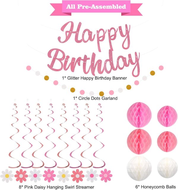 - Package Included: You can get 1pcs Pre-Strung Happy Birthday Banner, 6pcs Honeycomb Balls, 8pcs Hanging Swirls Streamers, and 1pcs Circle Dots garland. No need to worry about running around and finding individual items. With our party decoration package, you’ll have everything you need to create the perfect party atmosphere.