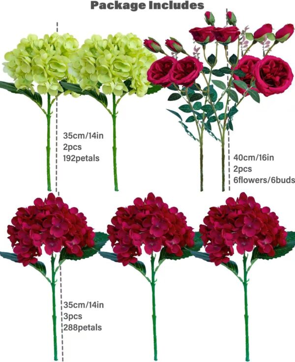 - Realistic High-Quality Materials – Our faux hydrangea and rose flowers are handmade with high-quality silk fabric by skilled craftsmen, so These faux hydrangea Heads are realistic, persistent, and reusable. The long stems are made of plastic with iron wire, allowing for flexibility in bending or cutting to suit your DIY bouquet preferences.people who like flowers but are allergic to them.