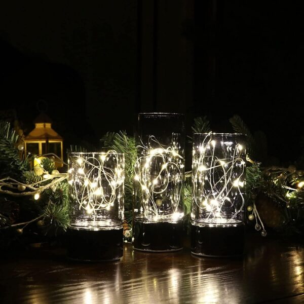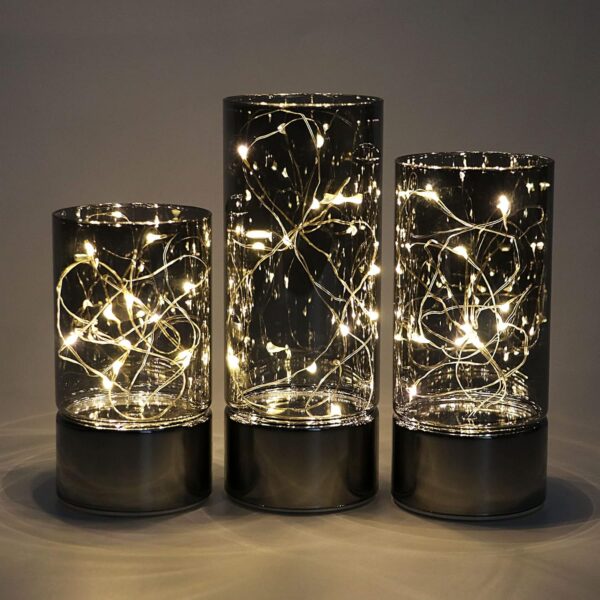 2 reviews for Set of 3 Glass Cylinder Lanterns – Battery-Operated Fairy Lights with Flameless Candles & Timer