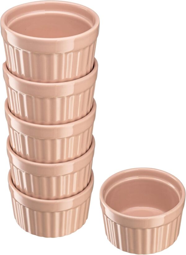 Set of 6 Pink Porcelain Ramekins – 10 oz Soufflé Dishes, Oven Safe for Baking Desserts & Soup