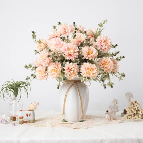 - Arrangement: Silk flowers with vase is suitable for wedding bouquets, table centerpieces, dinning room table, home decoration.