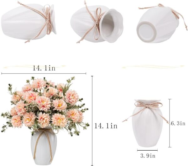 - Material: Fake silk flowers head and leaves, wired wrapped with plastic for creating stems; Vase is made of ceramic.