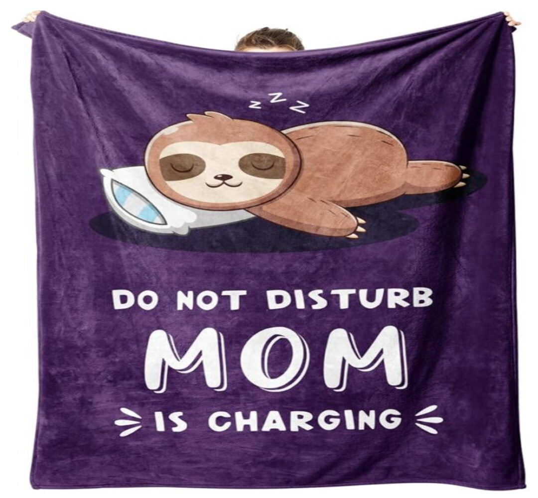 Heartfelt & Humorous: Celebrate Mom’s sense of humor with this “Mom is Charging” sloth blanket, designed to bring a smile to her face this Mother’s Day.