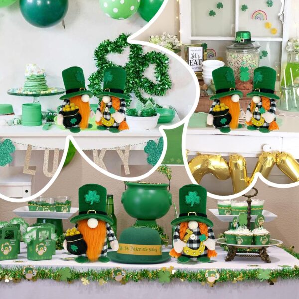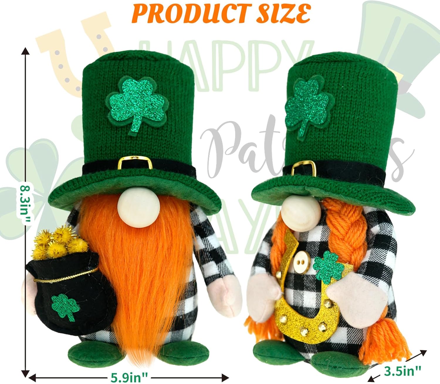 • Adorable Mr. and Mrs. gnome plush figures featuring Irish green shamrocks, gold pot accents, and lucky details to add a festive touch and bring warmth and charm to your home
