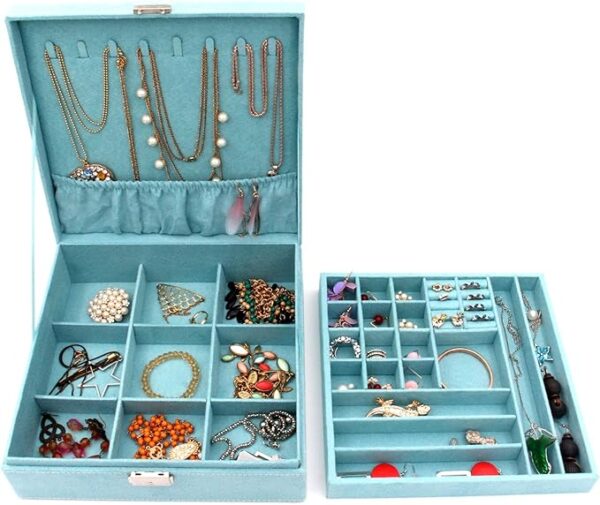 - Two-layers and removable design provides more space.Earrings, rings, brackets, necklaces can be held