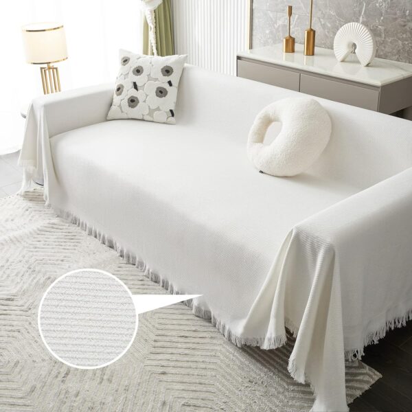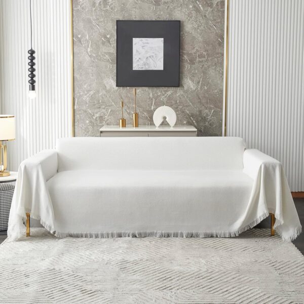 White Sectional Couch Cover – Washable Sofa Protector for 3-Cushion Couch, Thick Fabric for Pets (XX-Large, 91″ x 134″)